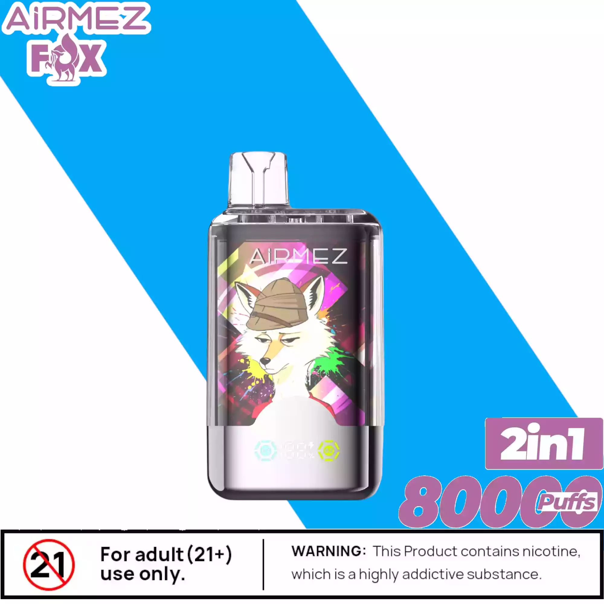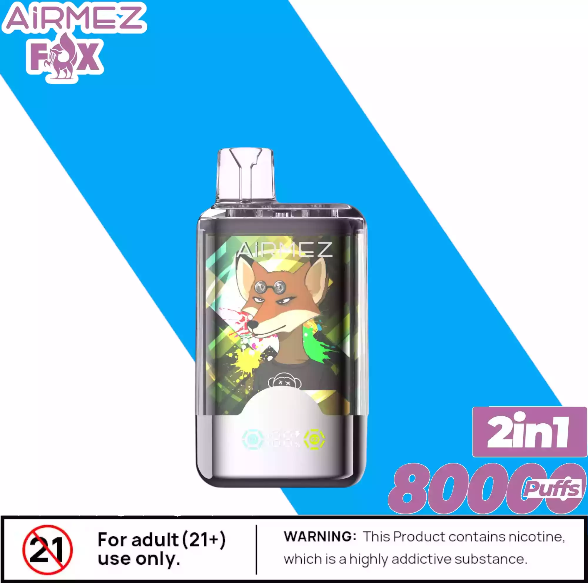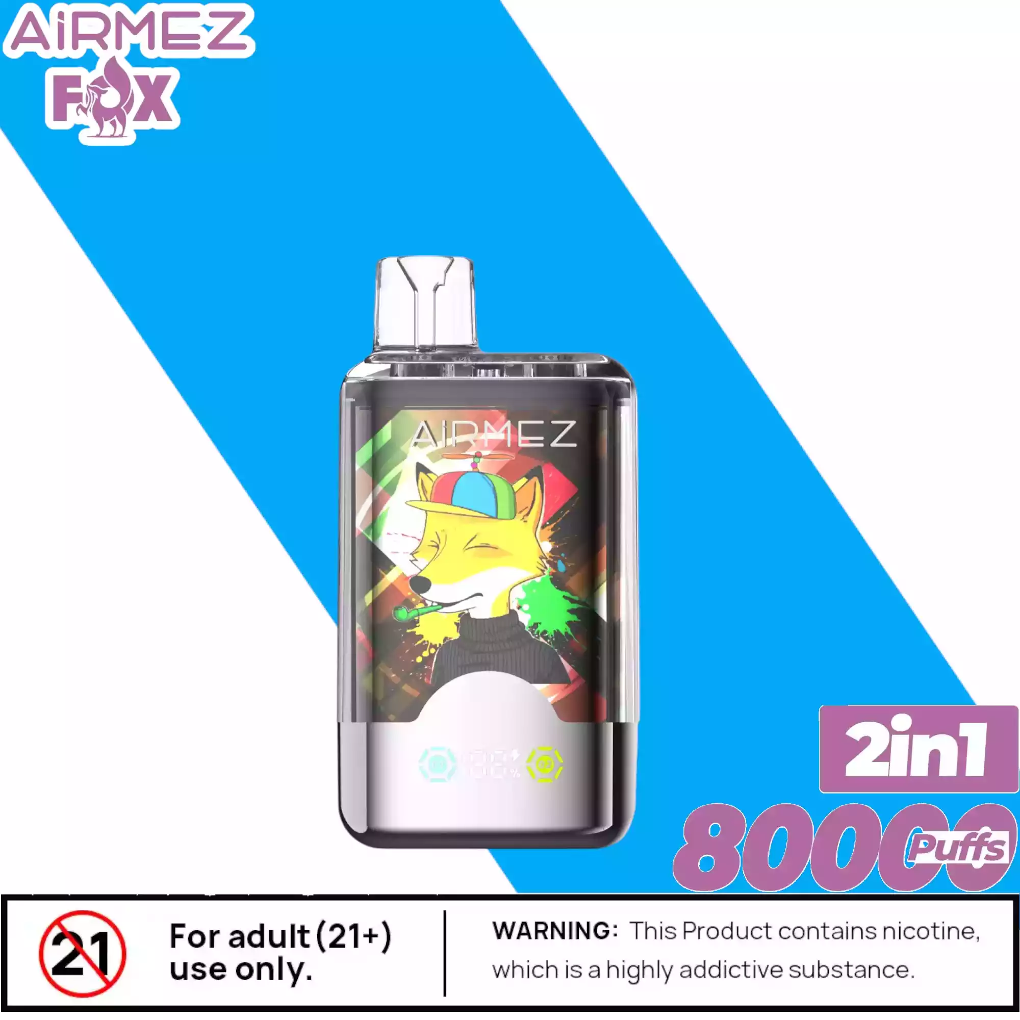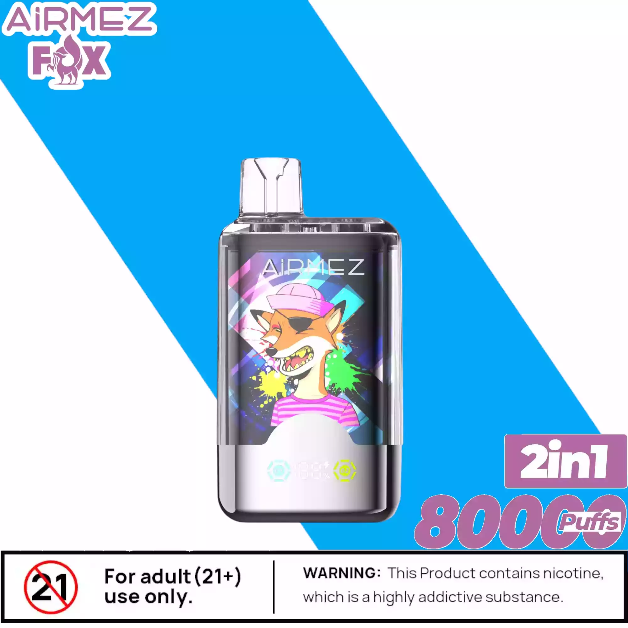Die Airmez FOX 2 IN 1 80000 Puffs enthält Nikotinsalz (2%), eine suchtfördernde Substanz. Nicht geeignet für Personen unter 18 Jahren, Schwangere oder Nichtraucher.
