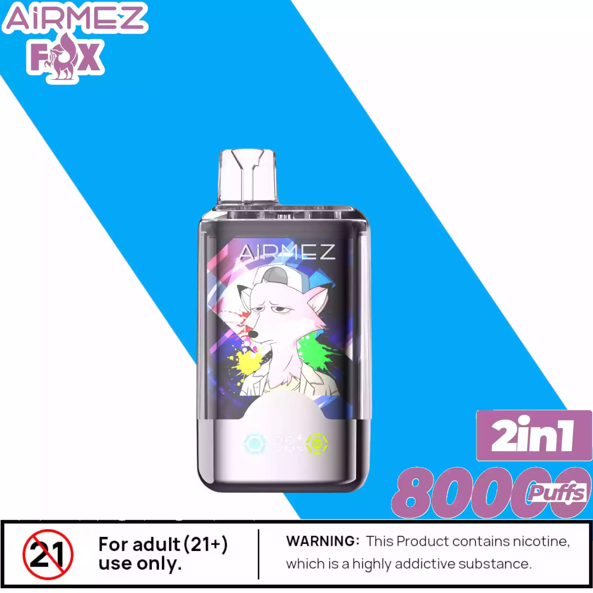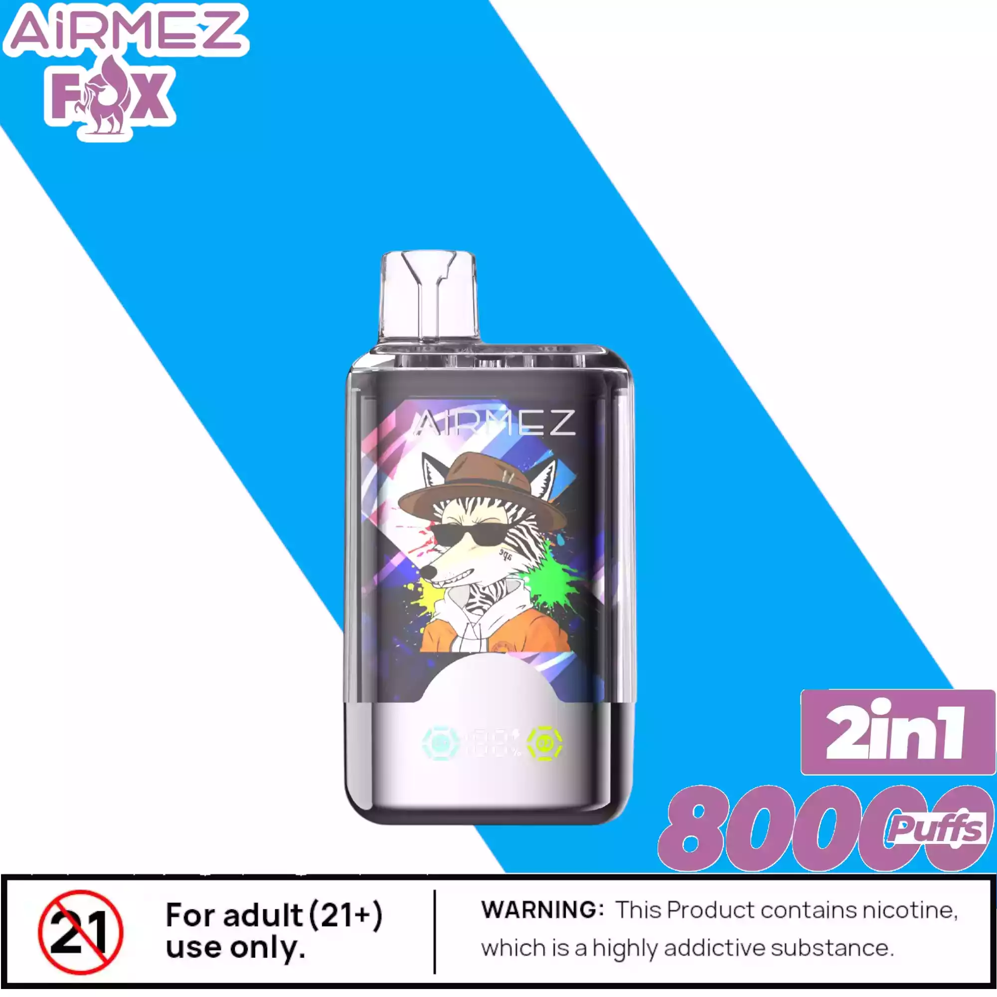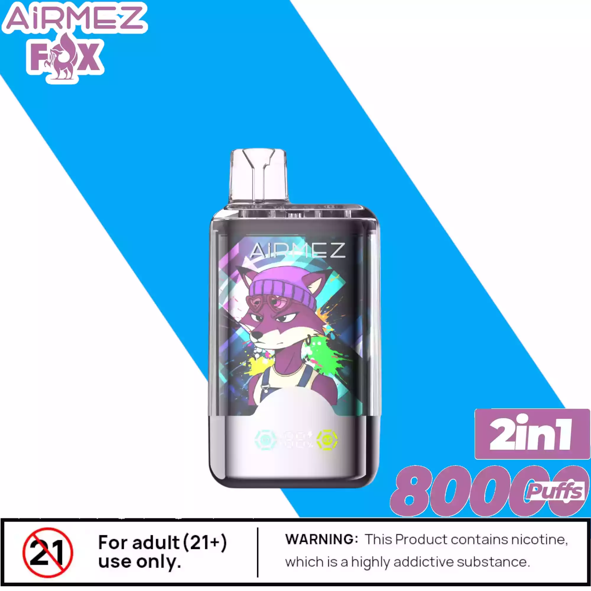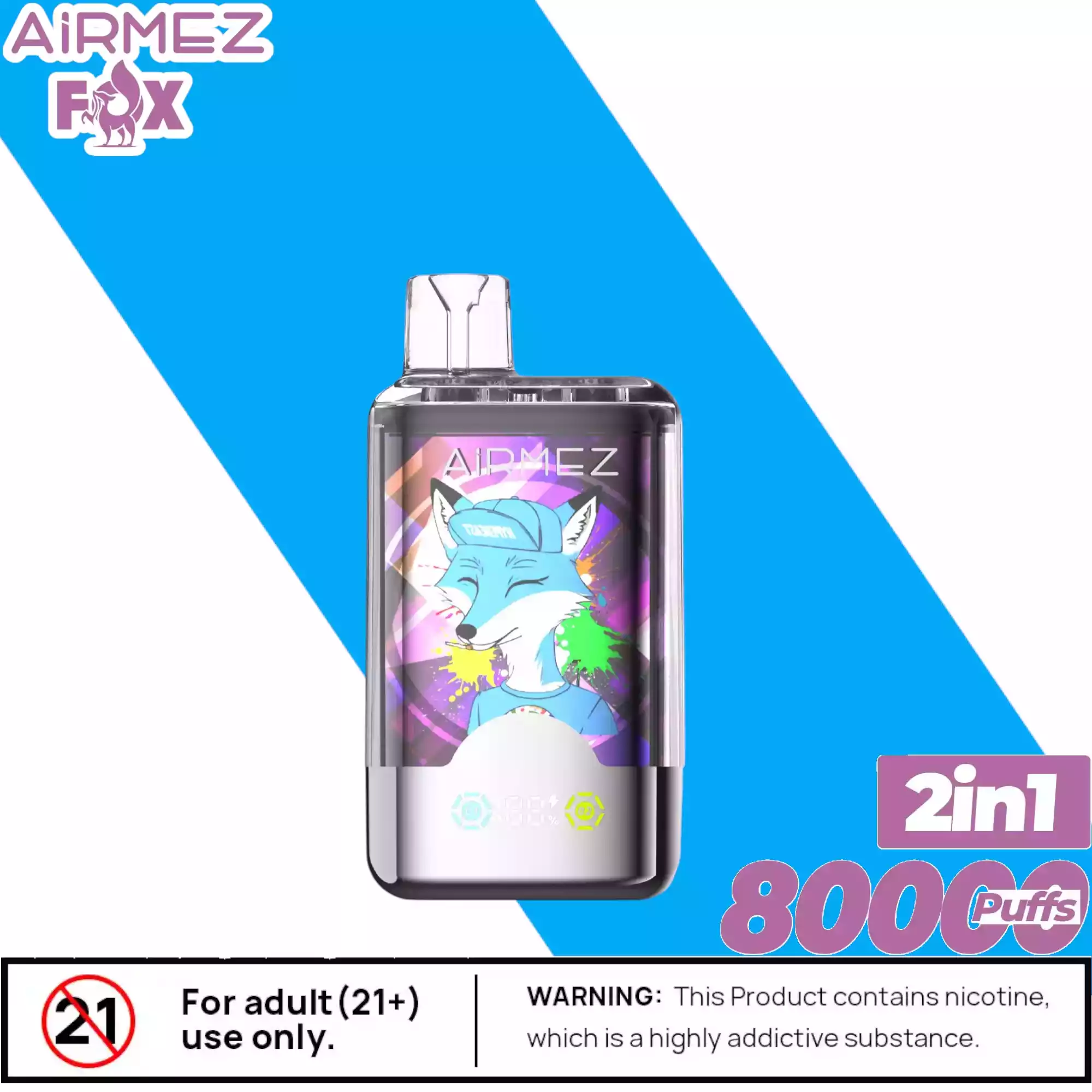 Die Airmez FOX 2 IN 1 80000 Puffs enthält Nikotinsalz (2%), eine suchtfördernde Substanz. Nicht geeignet für Personen unter 18 Jahren, Schwangere oder Nichtraucher.