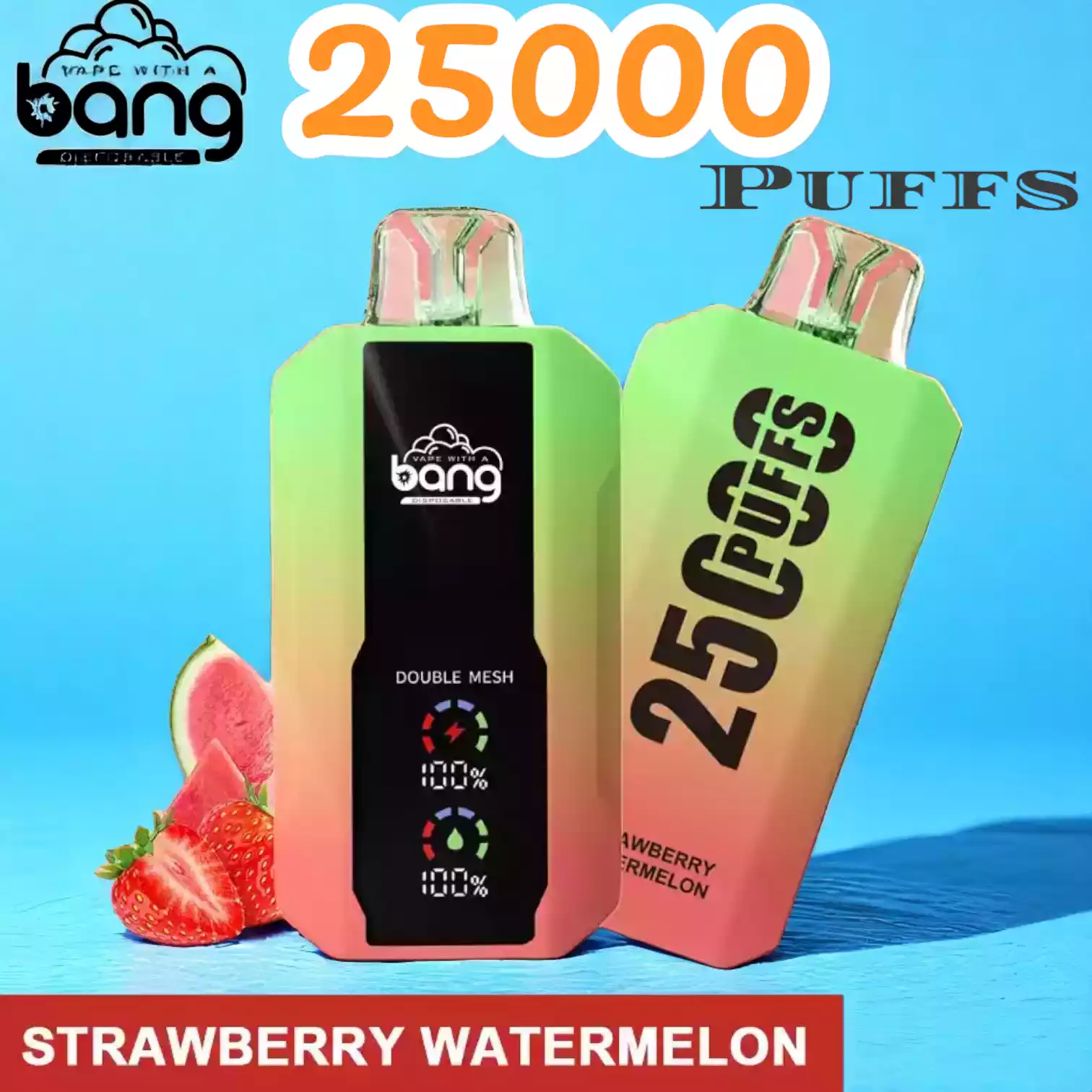 Der Bang 25000 Puffs bietet 12 köstliche Aromen, darunter erfrischende und fruchtige Optionen wie Watermelon Ice und Strawberry Kiwi.
