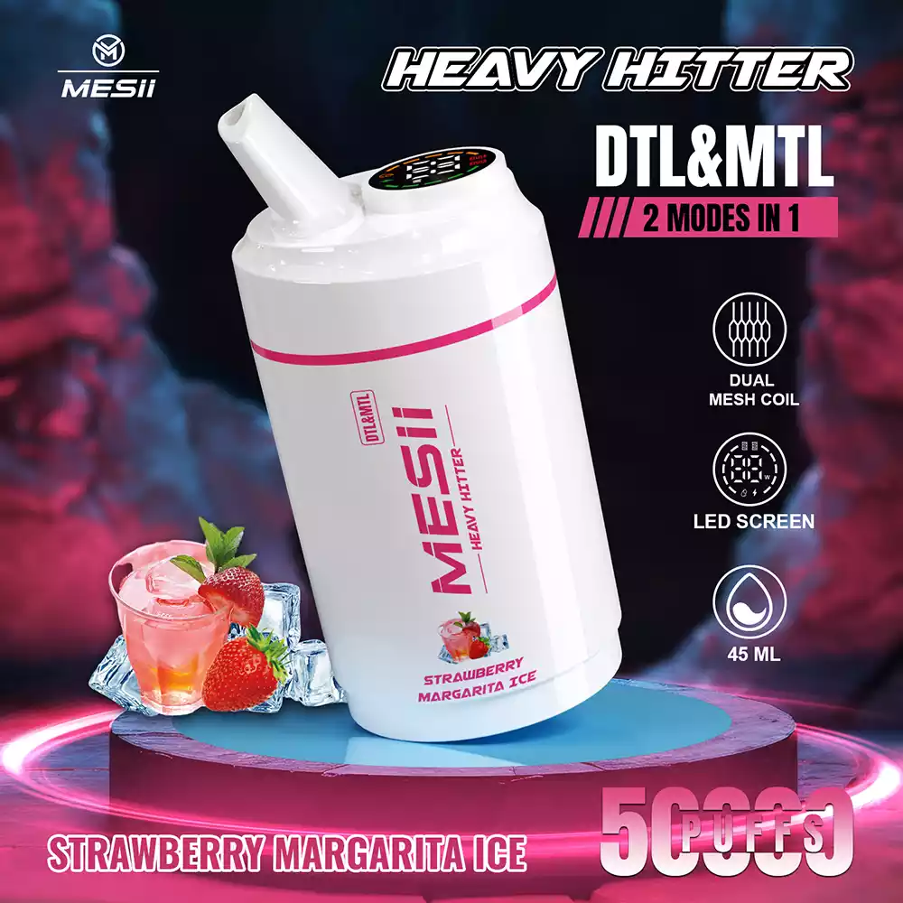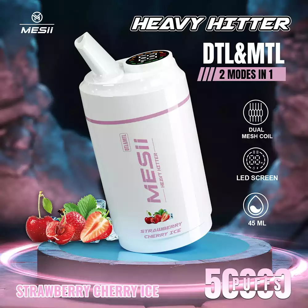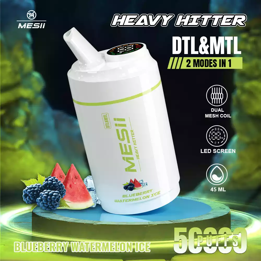 Der Mesii Shisha Heavy Hitter 50000 Puffs Disposable Vape ist die perfekte Wahl für anspruchsvolle Dampfer, die nach einem leistungsstarken, langlebigen und geschmacksintensiven Erlebnis suchen. Mit beeindruckenden 50.000 Zügen bietet dieser Disposable Vape eine außergewöhnlich lange Haltbarkeit und sorgt für durchgehenden Genuss, ohne dabei an Qualität zu verlieren. Dank der innovativen Dual Mesh Coil-Technologie und der DTL & MTL-Kompatibilität können Sie zwischen unterschiedlichen Dampfstilen wählen – ob Sie den intensiven Direct-to-Lung (DTL)-Zug oder den klassischen Mouth-to-Lung (MTL)-Zug bevorzugen.