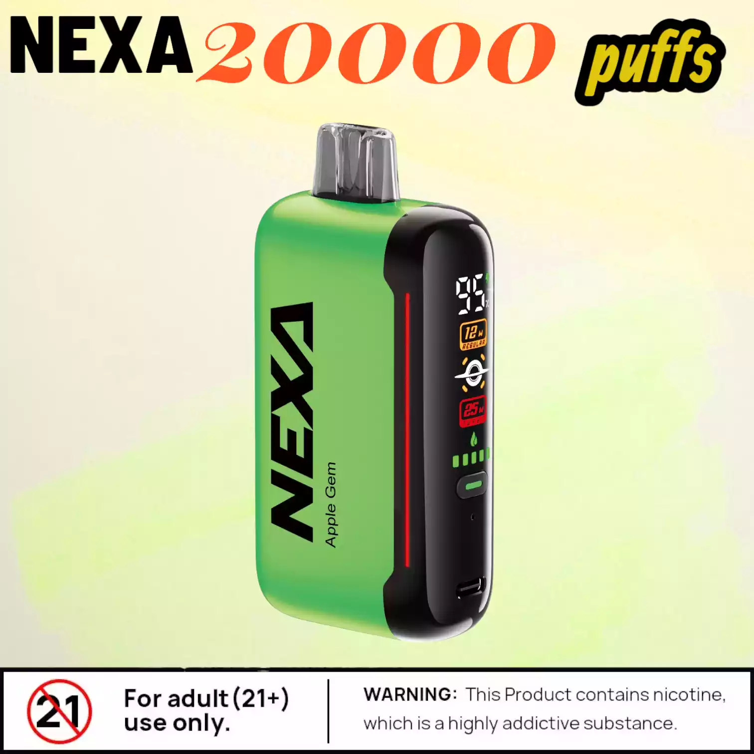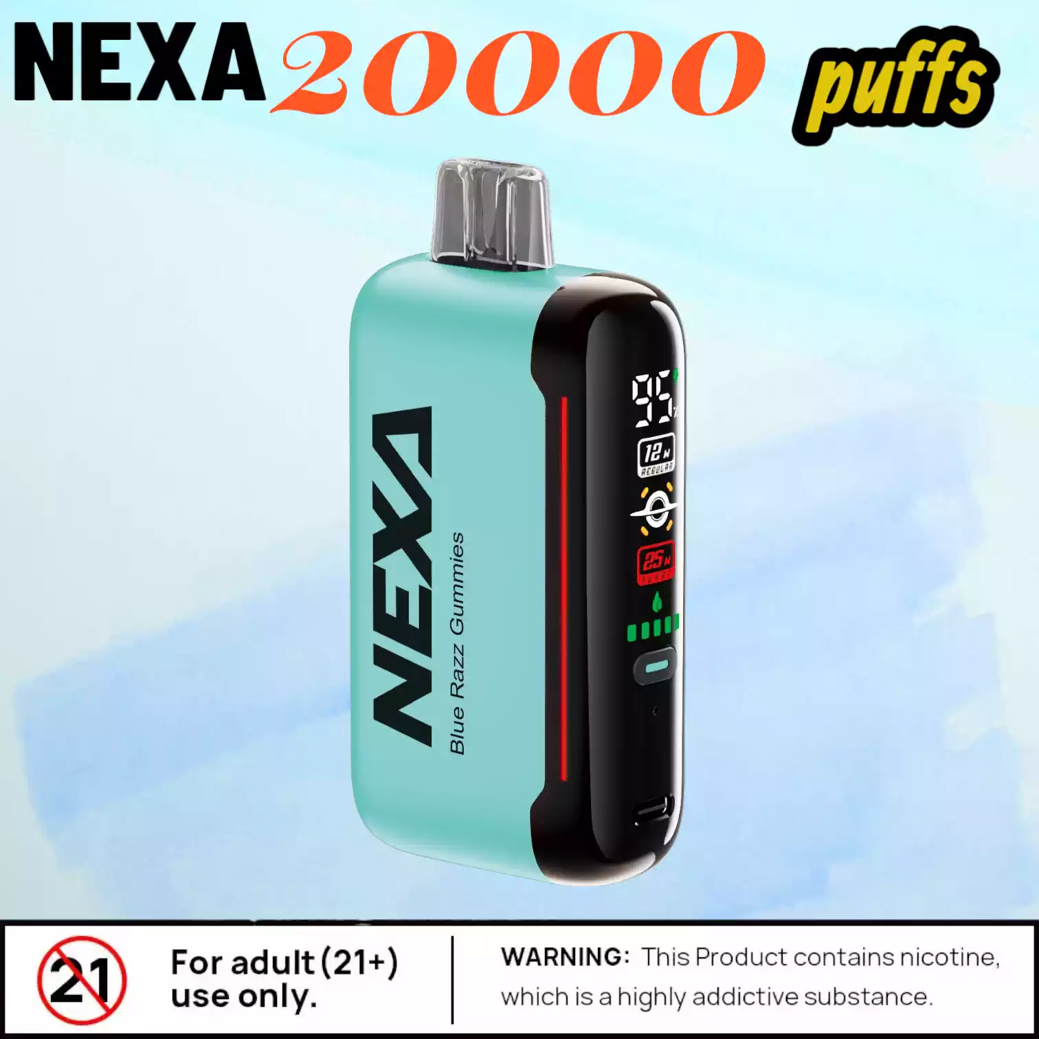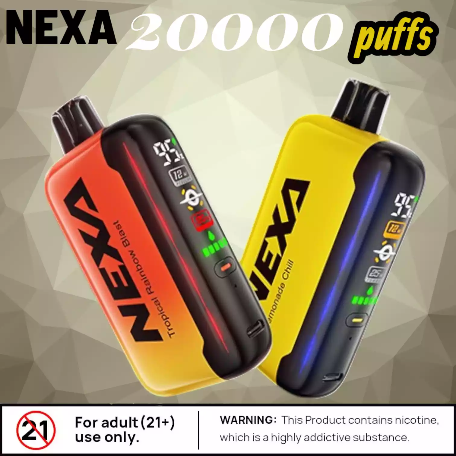 Die NEXA N20000 20000 Puffs enthält Nikotin (50 mg/ml), einen Stoff, der stark abhängig machen kann. Dieses Produkt ist ausschließlich für Erwachsene bestimmt. Bitte verantwortungsvoll nutzen und entsprechend den lokalen Vorschriften entsorgen.