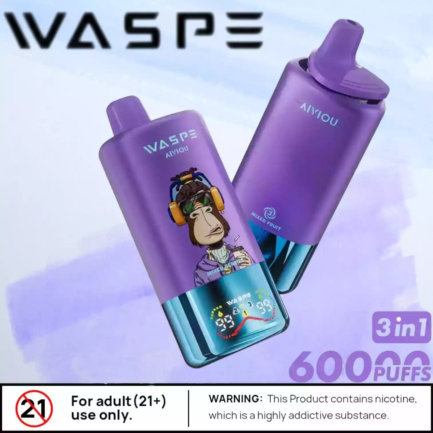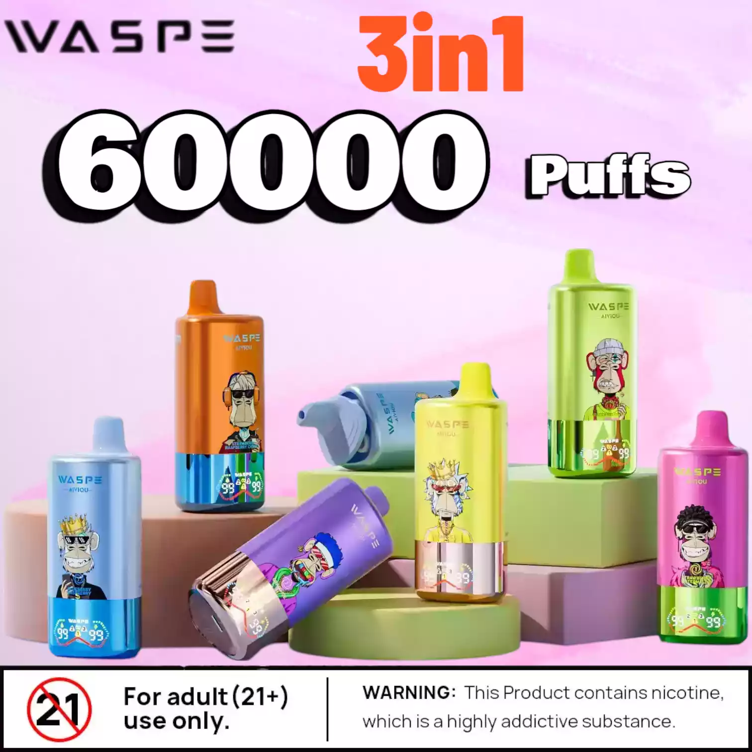 Der WASPE 3 in 1 60000 PUFFS bietet eine Vielzahl kreativer und intensiver Geschmacksrichtungen – für jeden Geschmack ist etwas dabei: